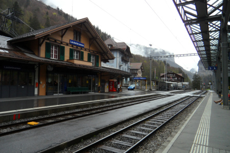 Вокзал Лаутербруннен округа Интерлакен (Station Lauterbrunnen of district Interlaken) Интерлакен, Бернские Альпы, Швейцария - 3