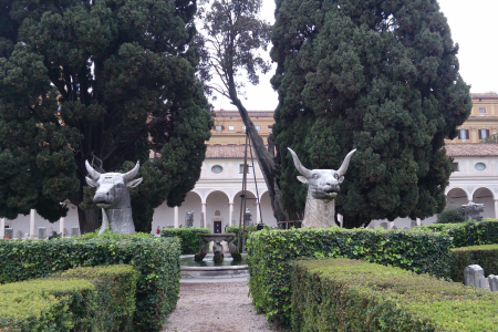 Скульптуры голов животных в саду терм Диоклетиана