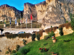 В центре Юргюпа в границах «национального парка Гёреме и Каппадокийских Скалистых районов», которые были включены в Список всемирного наследия ЮНЕСКО в 1985 году, возвышается скала Эсбелли. С 2000 года ведутся восстановительные работы, и на месте древних пещерных жилищ выстроен уникальный отель Kayakapi Premium Caves, номера которого размещаются в пещерах Кападокии. Территория отеля находится на вершине холма Эсбелли и занимает площадь в 10 квадратных километров. А номеров в этом отеле не более пятидесяти (восстановление пещер и строительство новых номеров продолжается). НО КАКИЕ это номера!!! Простор, роскошь, наслаждение... Каждый номер уникален по размерам, дизайну, планировке и имеет своё собственное имя. Наш был №306 и звался Кемаль Язгач Эви. Не рассказать об этом отеле невозможно)))