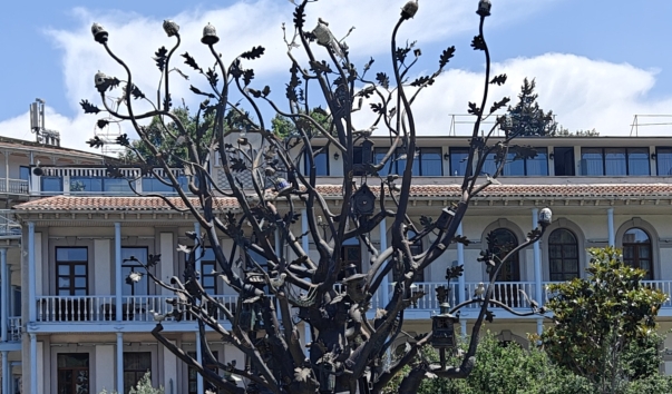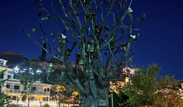Не так давно в парке Рике в Тбилиси появились новые скульптуры. Открытие состоялось на Тбилисобу, в день города. Вот такое вот интересное дубовое дерево теперь возвышается у нижней станции канатной дороги. Увенчанное желудями, украшенное разнообразными домиками, совами и птицами, тбилисское древо жизни, по задумке автора, являет собой метафизику старого города. Рядом есть скульптурная скамеечка с привязанным к ней милым песиком. Скульптор Давит Монаварлисашвили. Высота 9 метров. Установлено в 2016 году.
