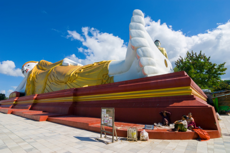 Статуя лежащего Будды в храмовом комплексе Бодхи Татаунг